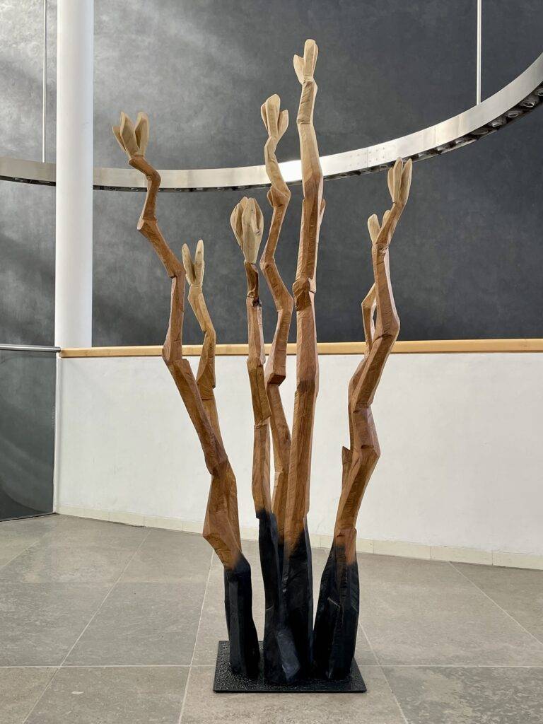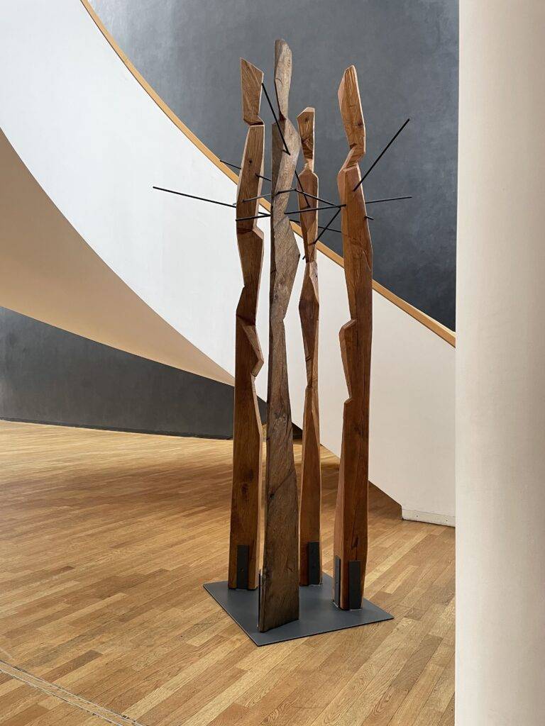 wooden characters zeigen den Menschen in seiner stillen Bewegung. Als Figurengruppe aufgestellt, symbolisieren sie den Zusammenhalt und das Miteinander innerhalb unserer Gemeinschaft. Den gegebenen Formaten Spannung zu verleihen und dennoch in Harmonie zu sehen, macht den Reiz aus. Jede Figur ist ein Unikat und besitzt ihre eigene Blickrichtung. Dennoch ist sie den anderen eng verbunden. Sie inspirieren einander und wirken im Zusammenspiel am kräftigsten.